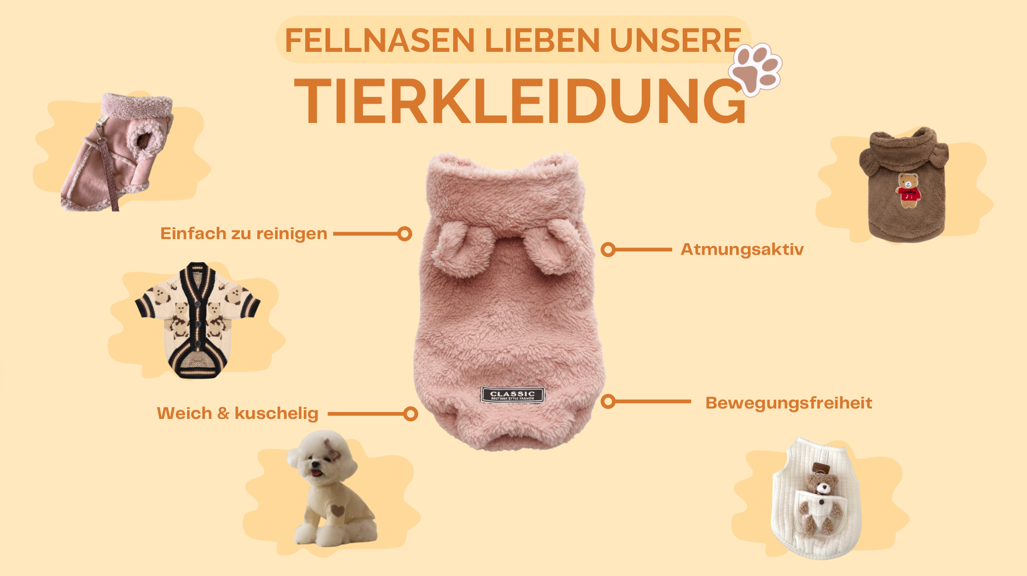 Entdecke unsere große Auswahl an einzigartigen und süßen Designs, die deinem Hund nicht nur einen tollen Look verleihen, sondern auch höchsten Komfort bieten. Ob für besondere Anlässe oder für den Alltag – bei uns findest du die perfekte Kollektion für deinen Vierbeiner!