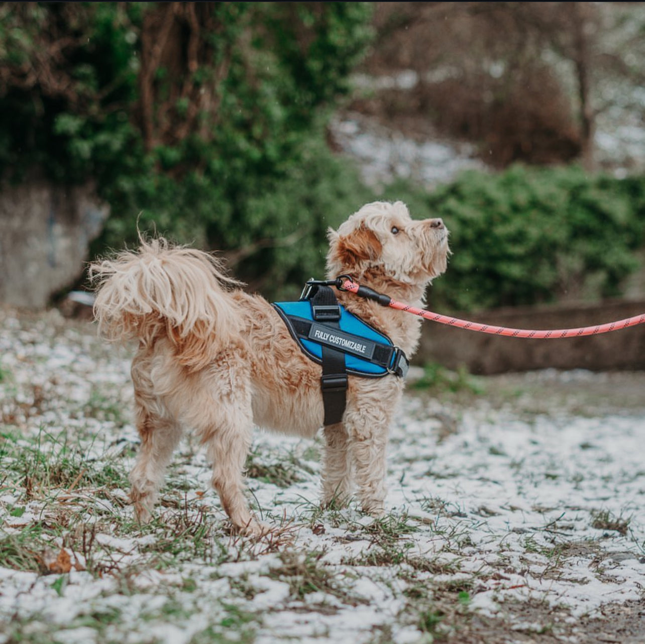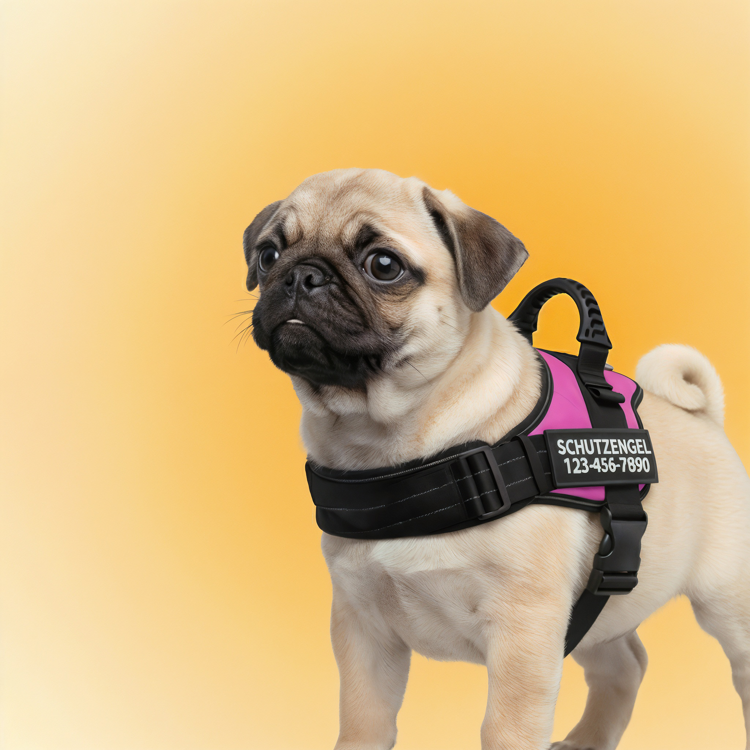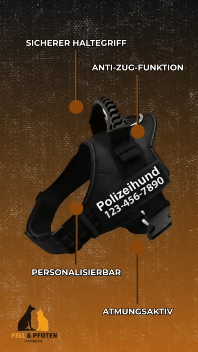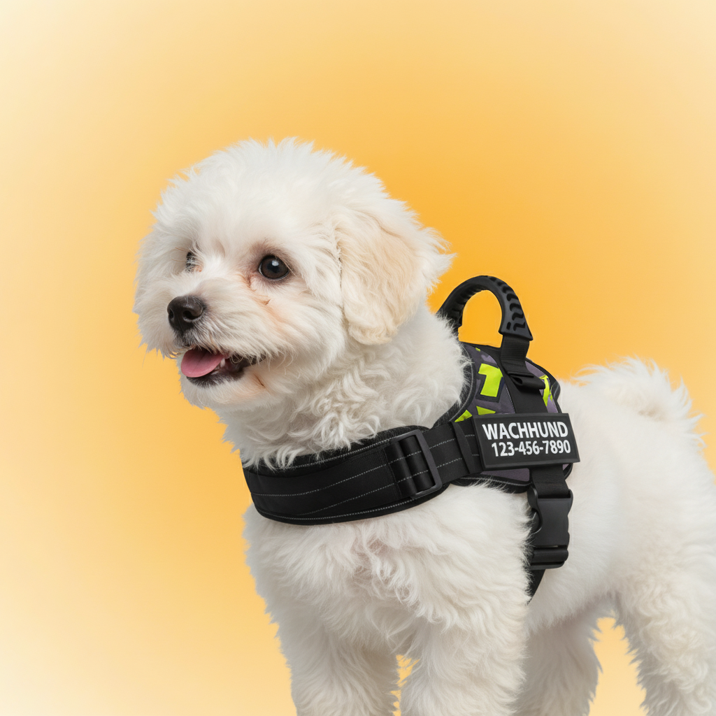 Gestalte das Geschirr nach deinen Wünschen! Durch die personalisierbaren Klett-Sticker kannst du den Namen deines Hundes oder wichtige Hinweise wie „Assistenzhund“ oder „Nicht anfassen“ anbringen. So bleibt dein Hund immer gut erkennbar. Gehe dafür einfach ganz nach oben zur Produktseite und fülle das Feld folgendes Feld aus: Welcher Name soll aufgedruckt werden?