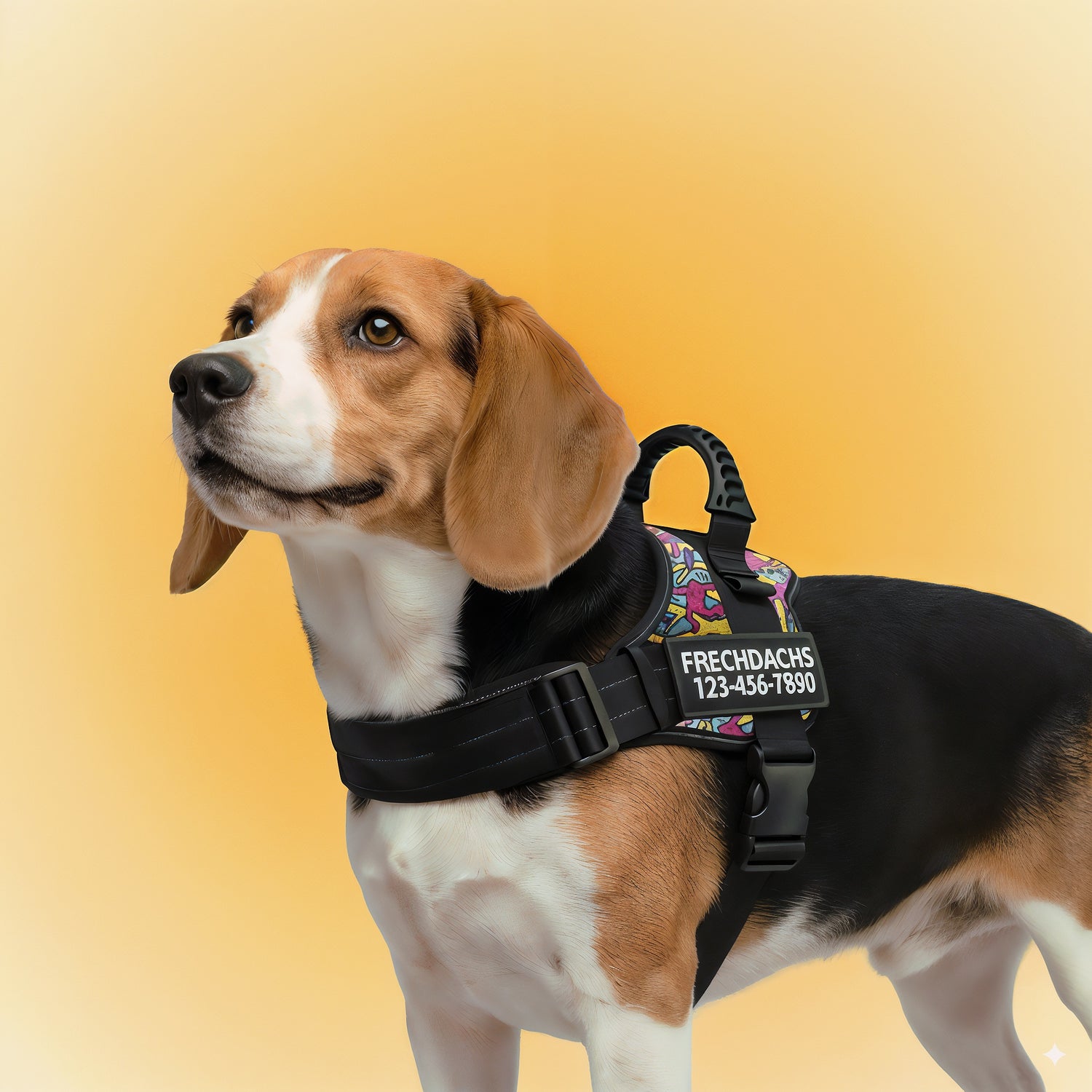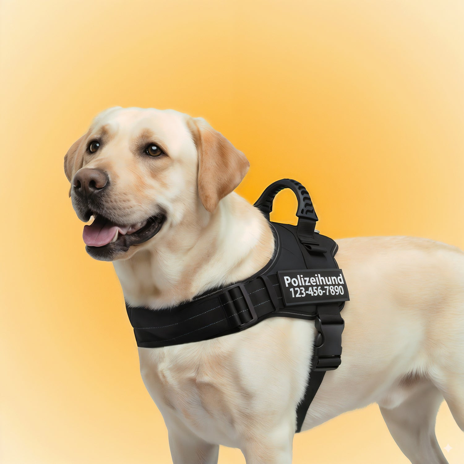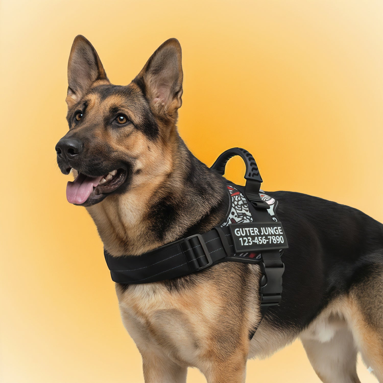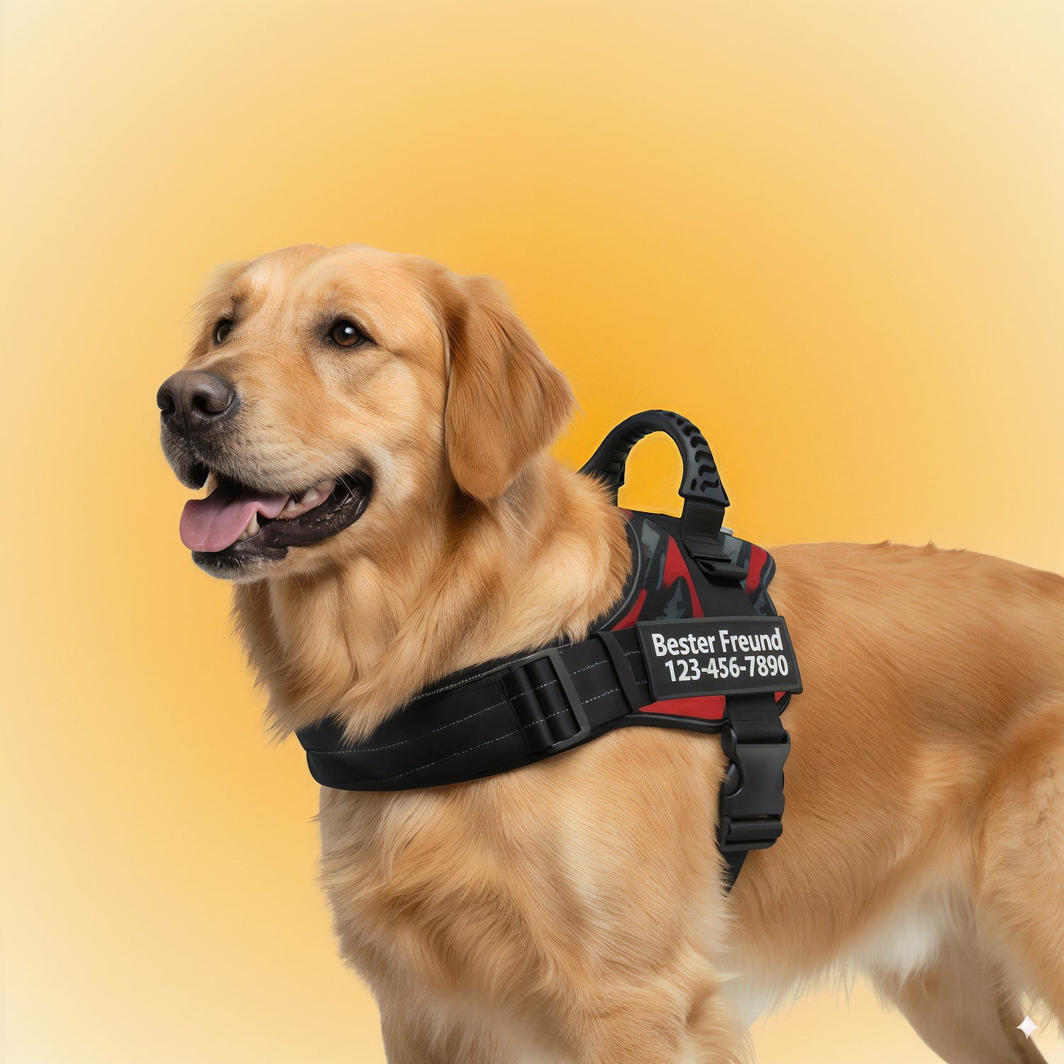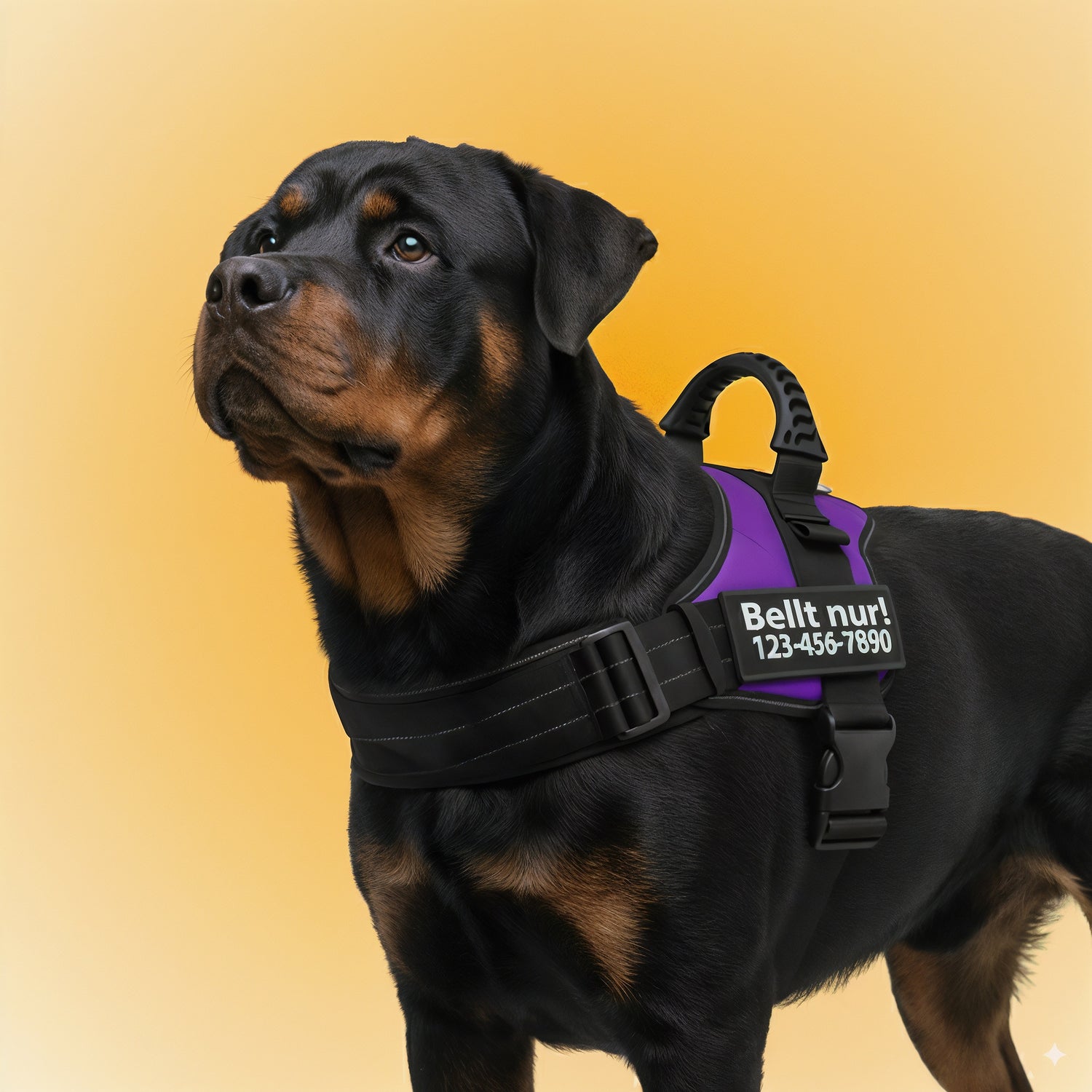 Das ergonomische, gepolsterte Design sorgt für einen angenehmen Sitz ohne Scheuern oder Drücken. Das Geschirr besteht aus robusten & atmungsaktiven Materialien, die deinem Hund auch bei längeren Spaziergängen, Training oder Abenteuern höchsten Komfort bieten.